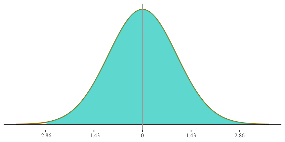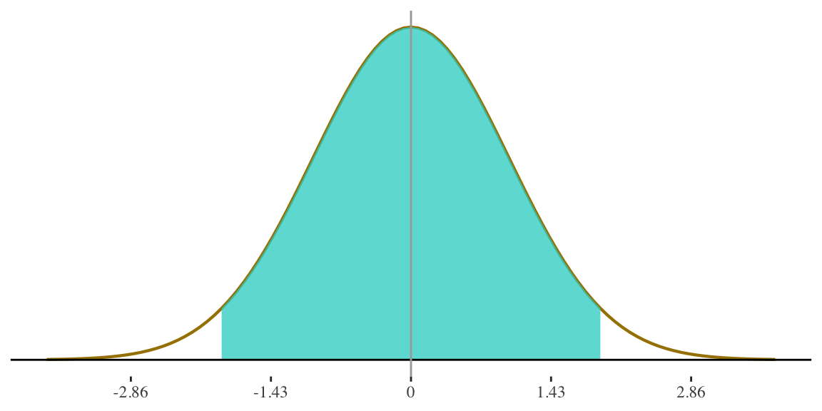 Scores defining the middle 95% of cases (in any normal distribution) are at \(Z = -1.96\) and \(Z = 1.96\)