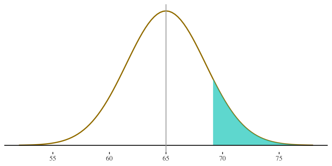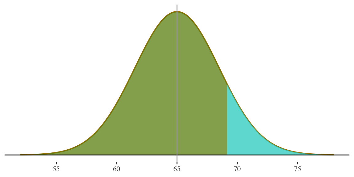 \[ P(\ge69) = \] \[ 1 - 0.87345 = \] \[ 0.12655 \]