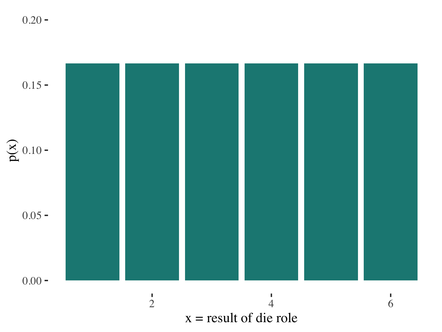 \[ P = \frac{\text{# of times the outcome of interest could occur in one trial}}{\text{total # of possible outcomes or events}} \]