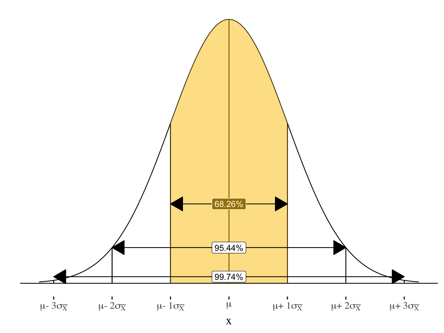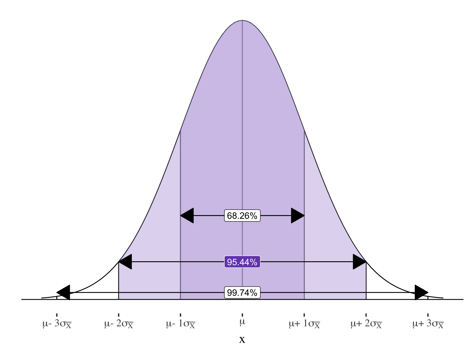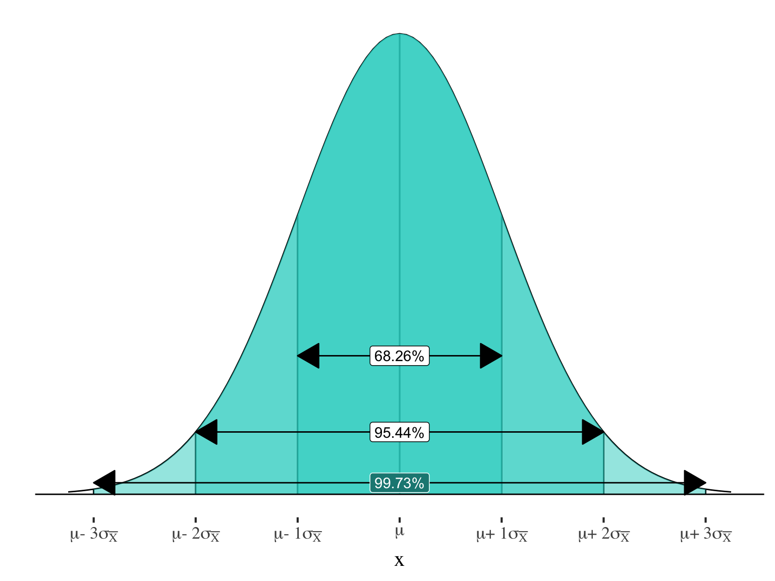 \(99.73\%\) of sample means will be within \(\pm3\) standard errors of the true population mean