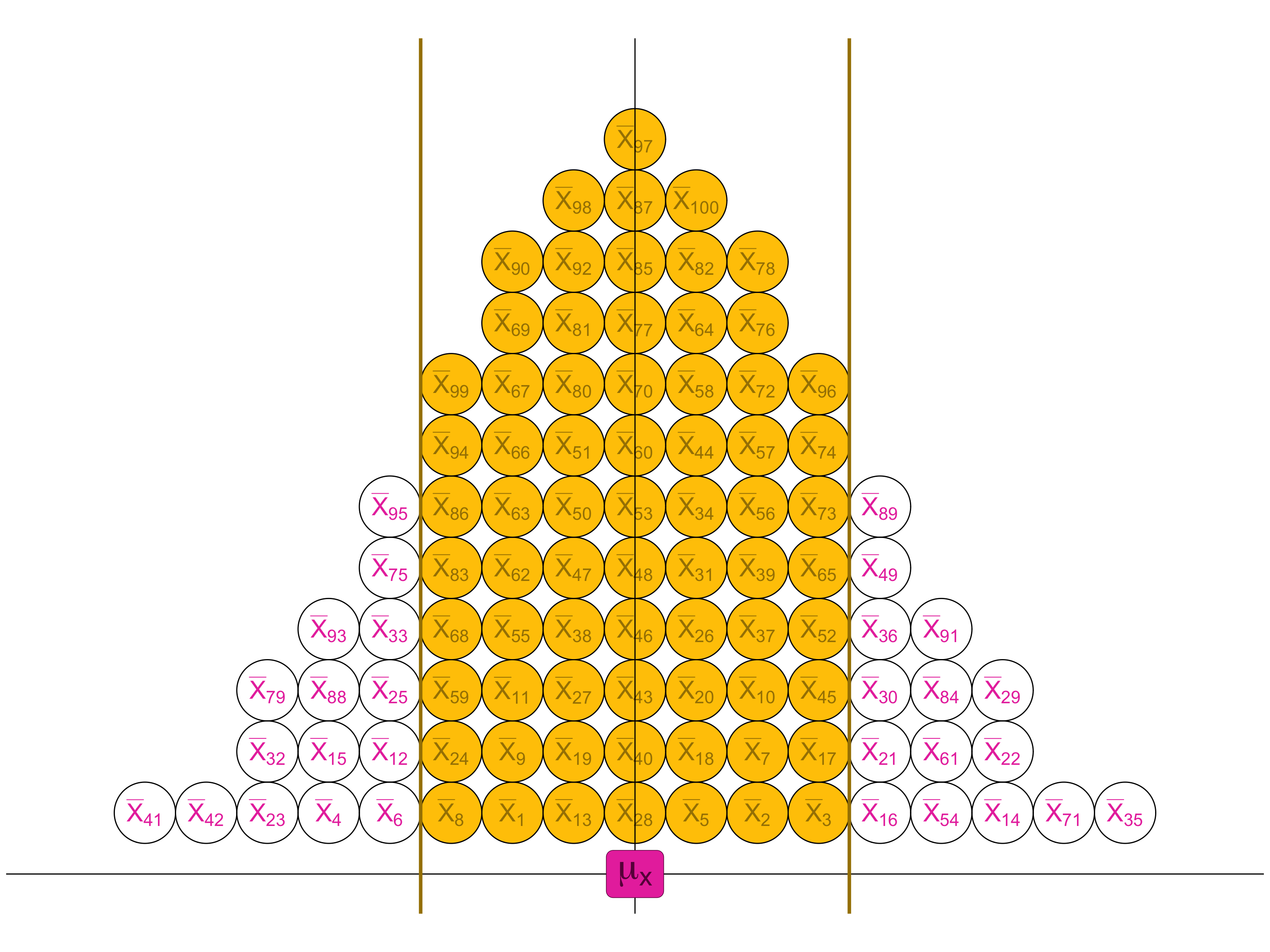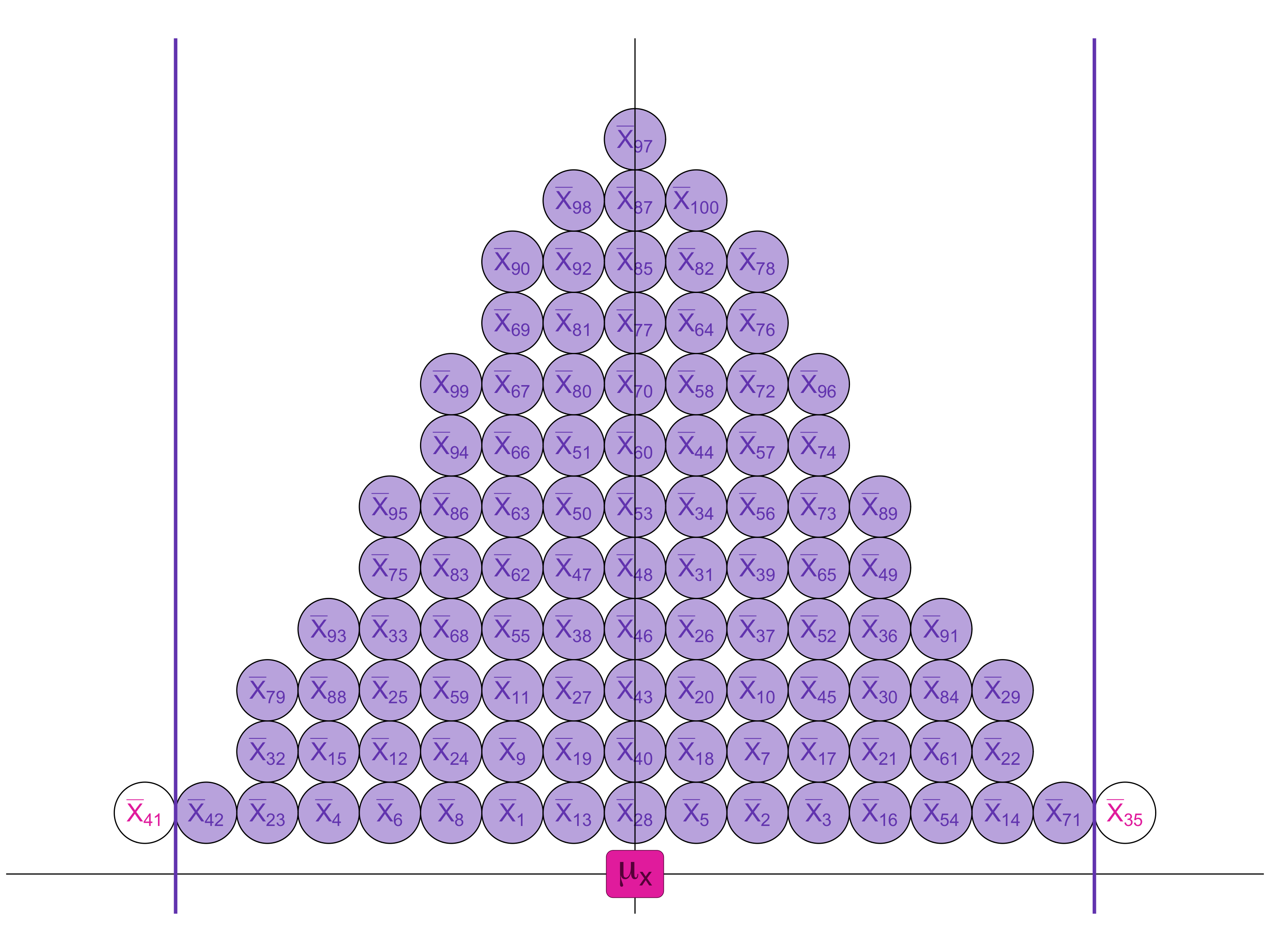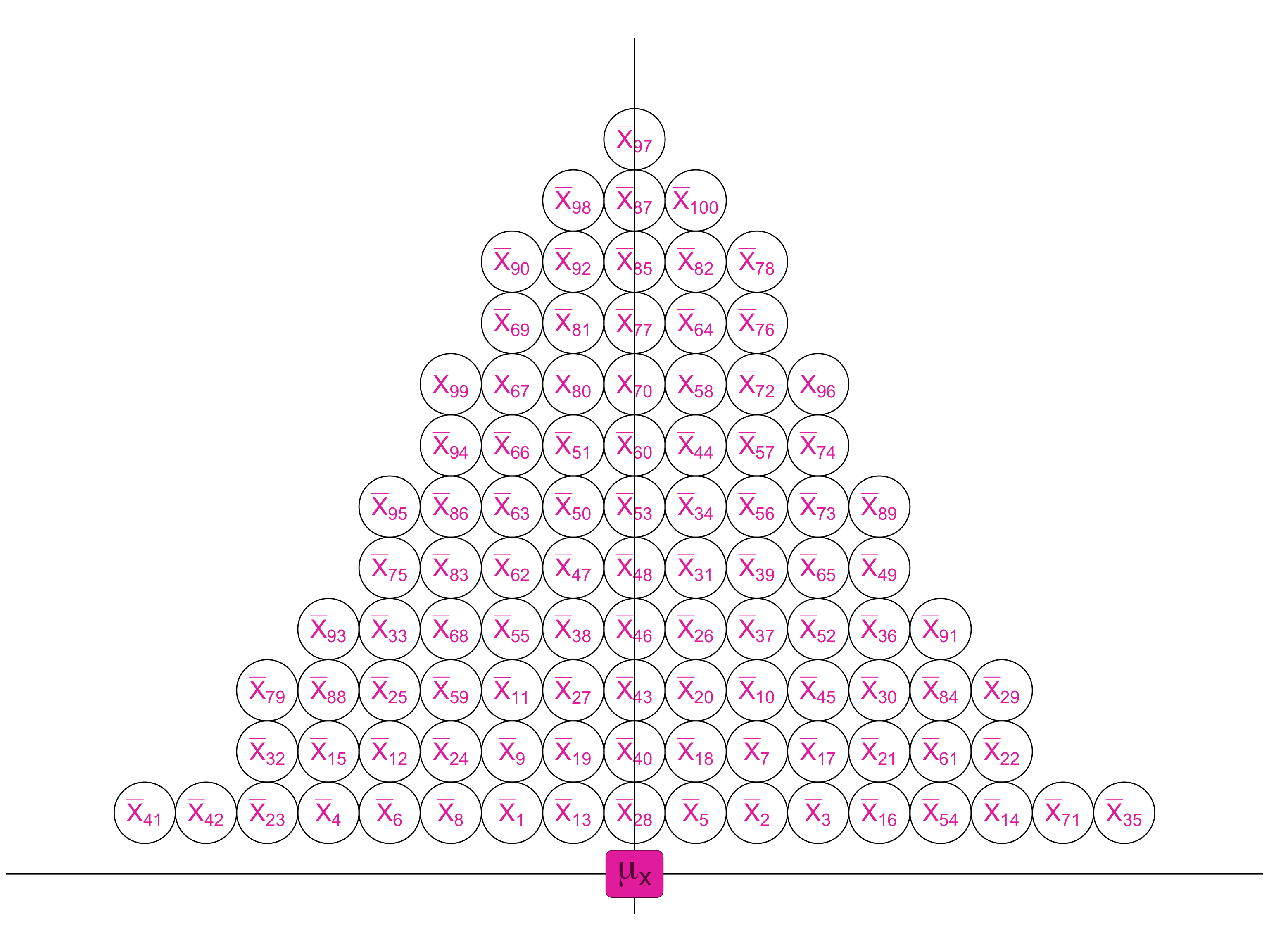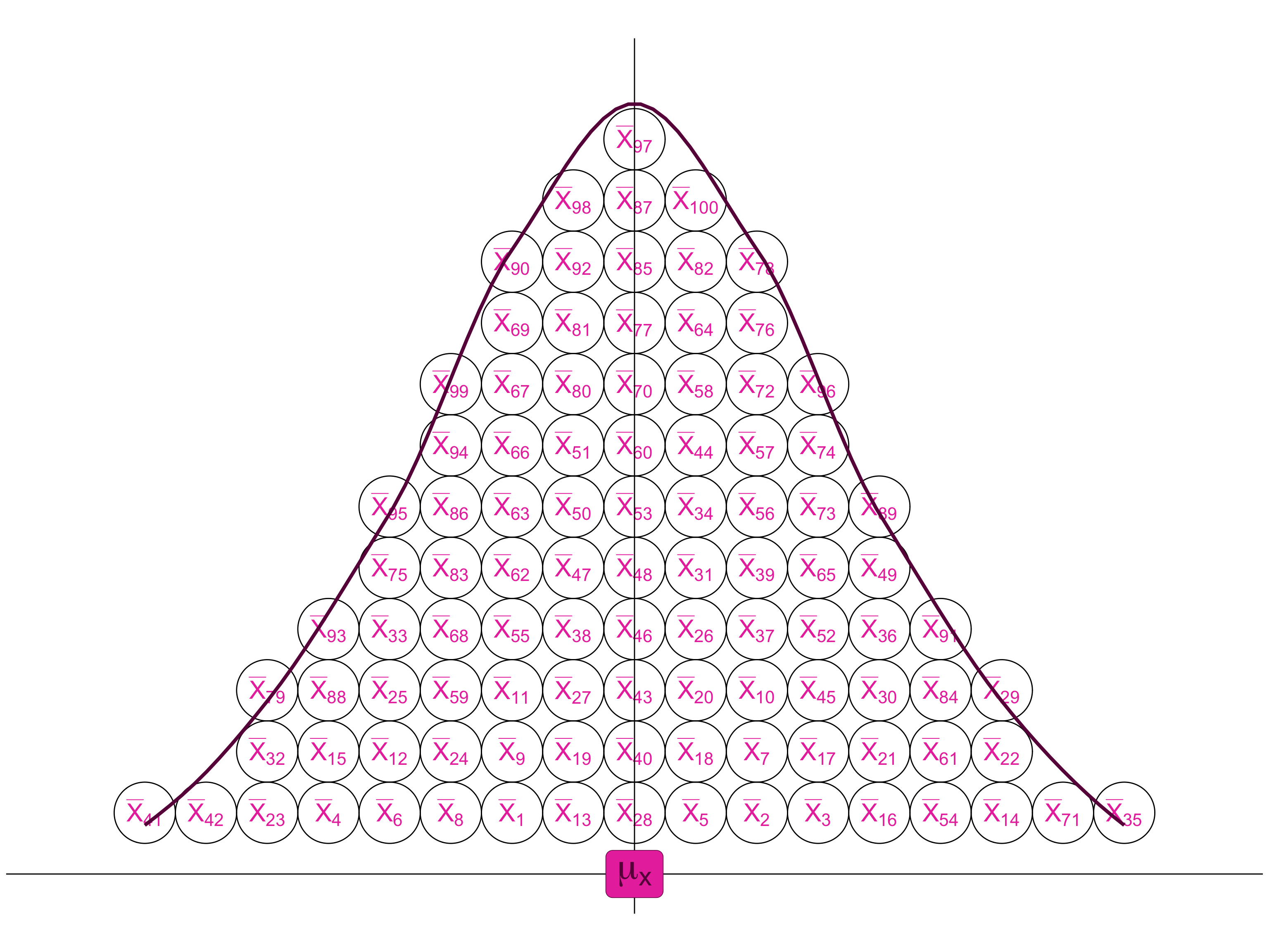 Now imagine drawing LOTS of independent samples and calculating the mean of X for each one.