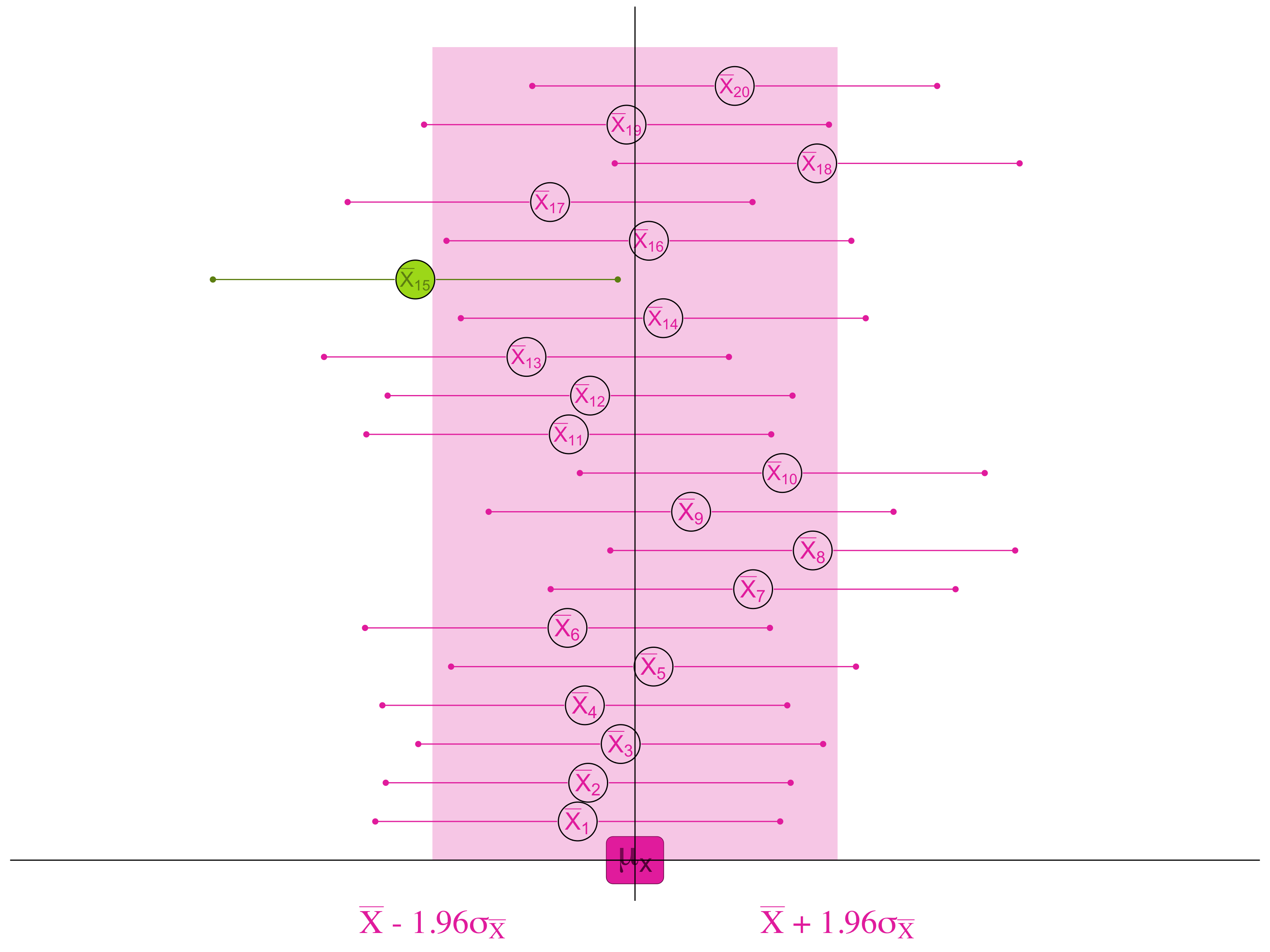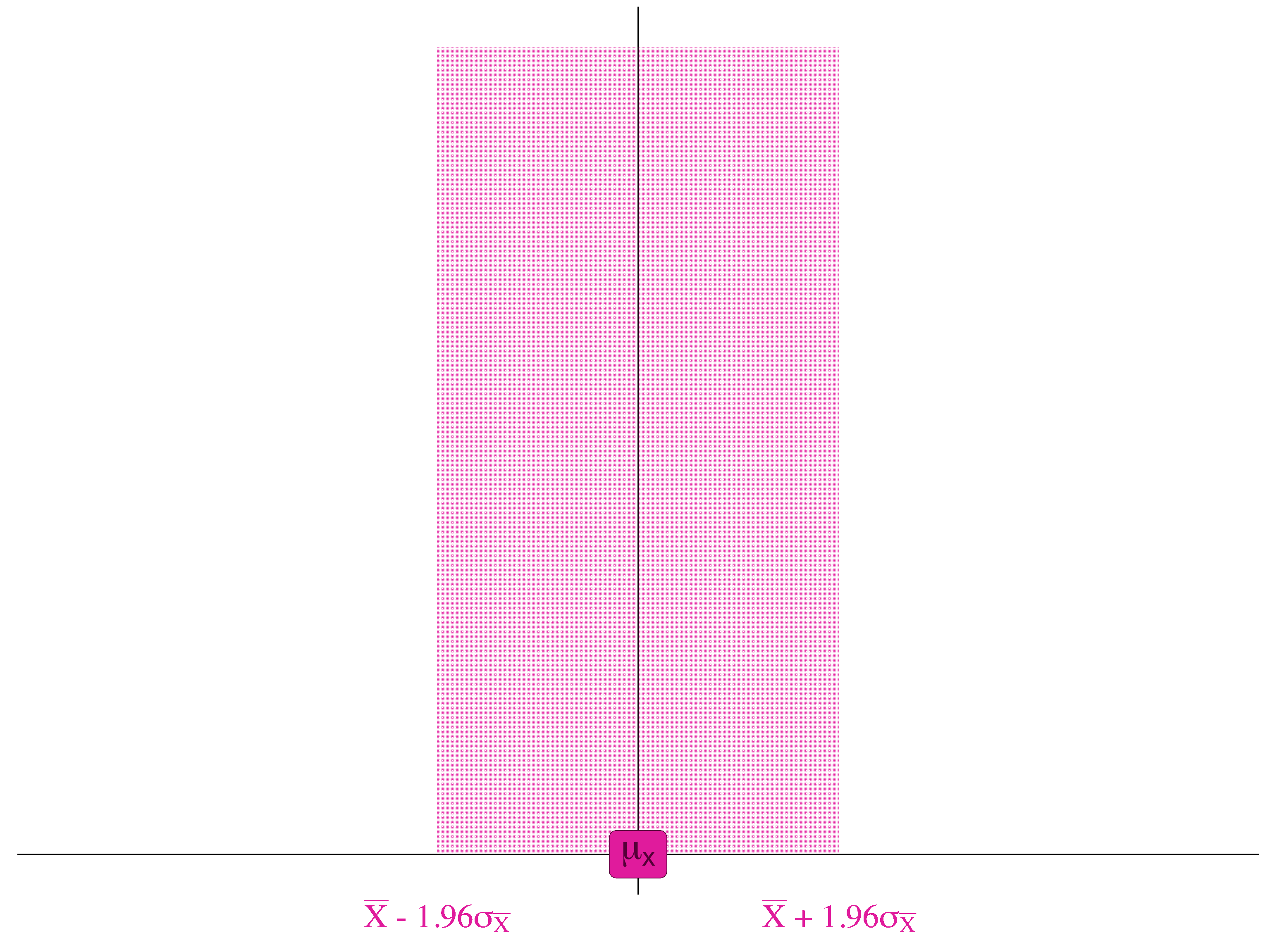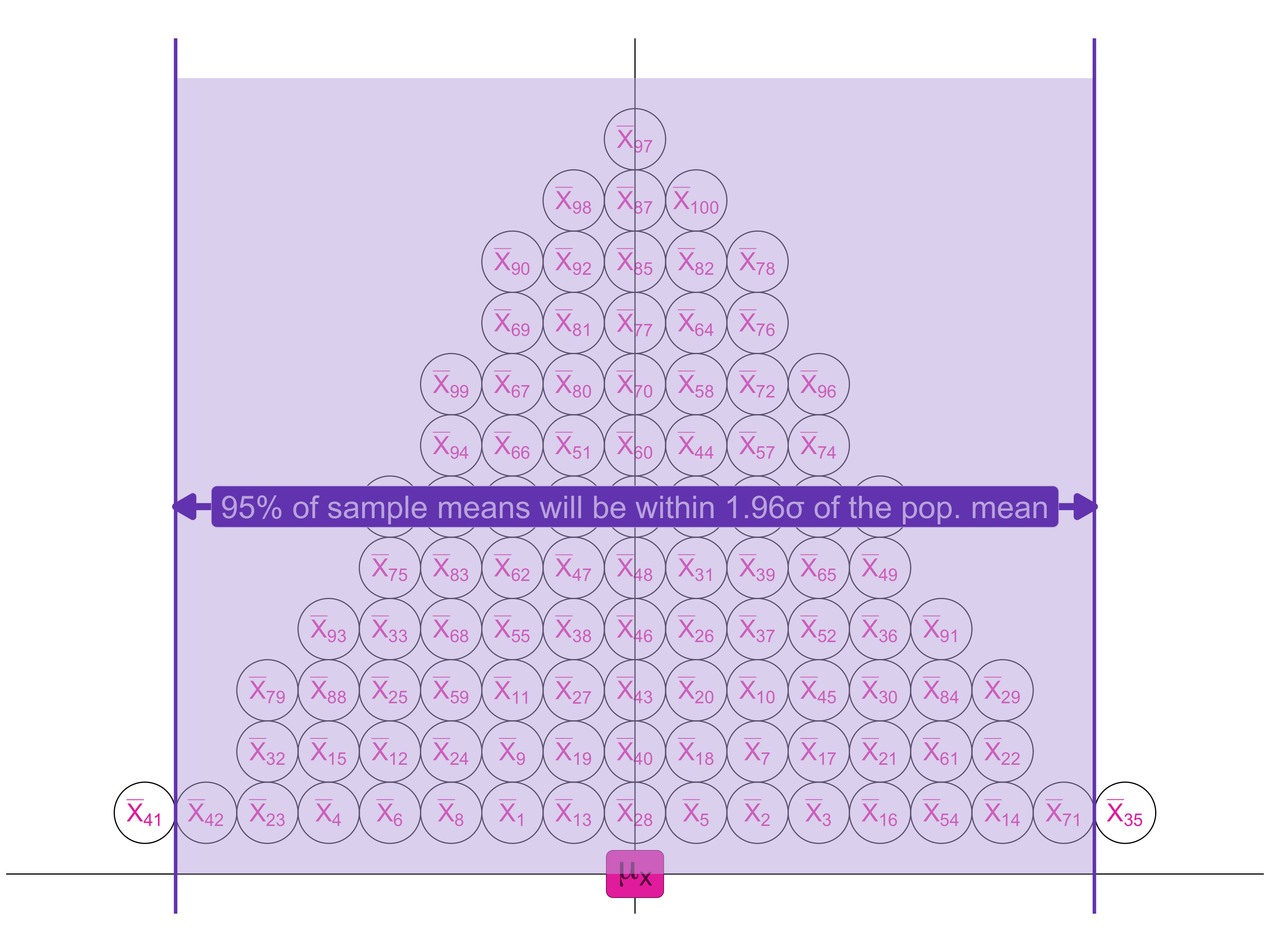 . . . then for 95 samples out of 100, we will find the true population mean if we look within 1.96 standard errors of the sample mean.