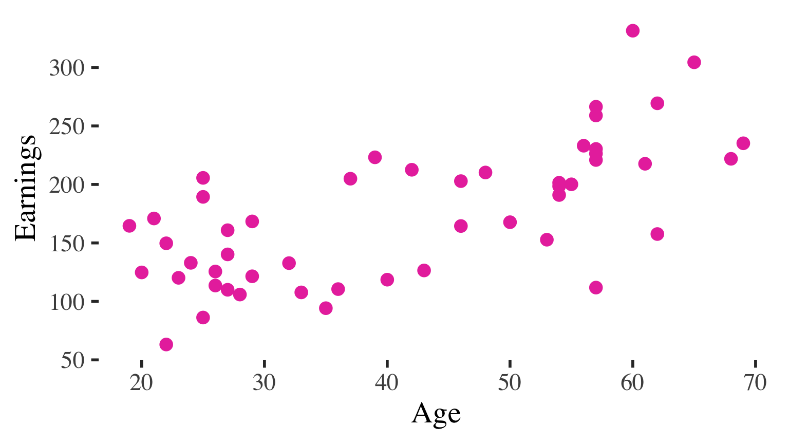 Scatterplot: A graph that uses points to simultaneously display the value on two variables for each case in the data